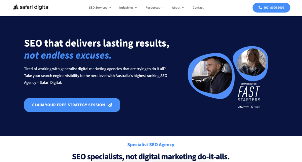Led by founder Liam Ridings and SEO specialist Breanna, Safari Digital works with businesses of all sizes across Australia. Their approach is built on transparency and collaboration, and they pride themselves on only taking on clients they genuinely believe they can help grow. Despite being a smaller, boutique agency, they have built strong authority in the SEO space and are frequently cited in competitor rankings and industry publications.