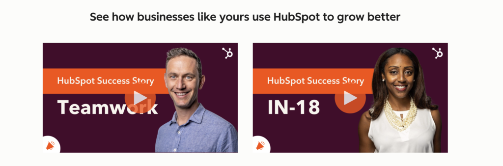 People buy from those they trust. Prove you are legitimate – Hubspot Landing page does this we’ll and ill use the examples below;