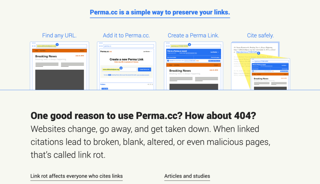 Perma.cc was developed by Harvard’s Library Innovation Lab in 2013 to combat “link rot” in academic and legal citations. It creates permanent, verifiable records of web pages with unique URLs, making them ideal for scholarly references.