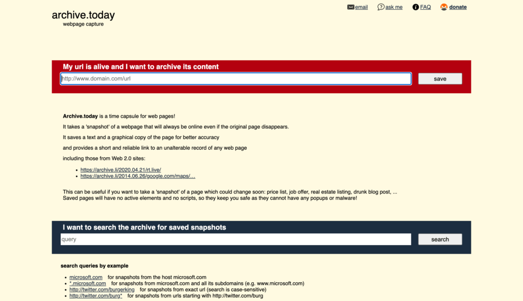 Archive.today (also known as Archive.ph) is a high-speed website snapshot tool that captures exact replicas of web pages at the moment of archiving. Launched in 2012, it is widely used by researchers, journalists, and professionals who need immediate, reliable copies of web content. Unlike some other tools, Archive.today bypasses many of the restrictions set by robots.txt, allowing it to archive pages that other platforms cannot.