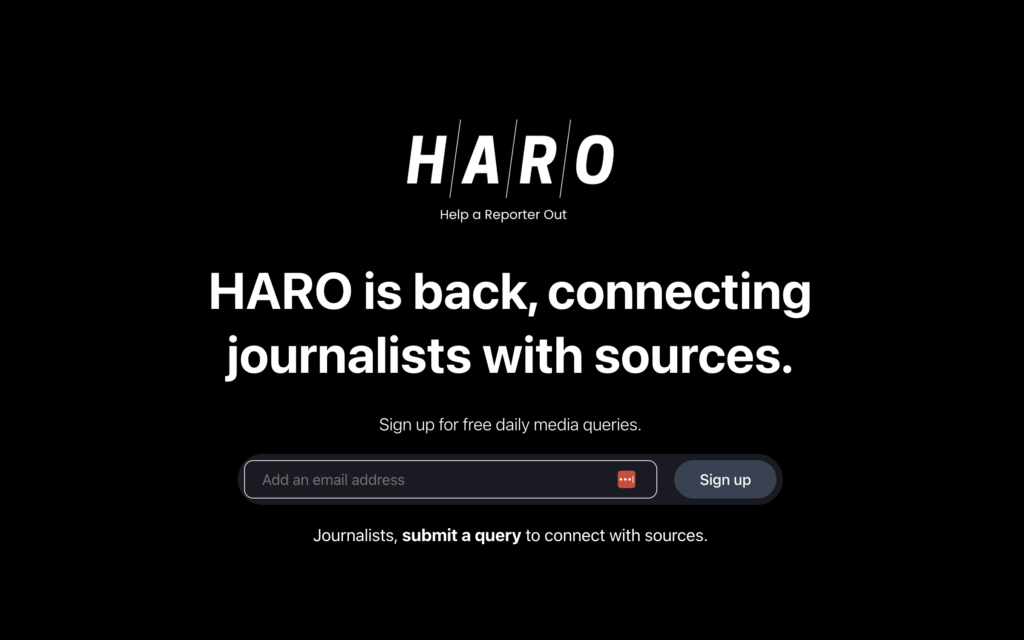 As it sounds “Help a reporter out”, HARO is a online free service that connects journalists and content creators with expert sources (this is where you come in).